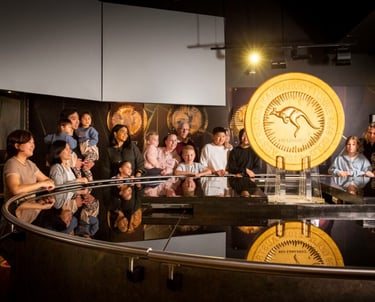 Once your tour guide arrives you and your group will start exploring the area. The first thing your tour guide is going to show you will be the ginormous coin! It was the design of the first coin in Australia. There will be walls with even more description and some rather fancy coins and gold.